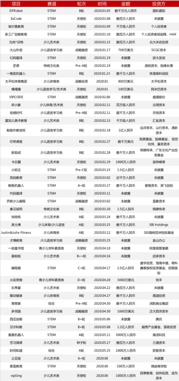 网址: 黑天鹅之年,钱去哪儿了?2020 年上半年教育行业一级市场投融资分析 http://www.xishuta.cn/zhidaoview12002.html