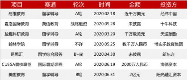 回看 2020 年上半年教育行业一级市场国际教育赛道的投融资情况,寥寥 7 笔,可谓惨淡。
