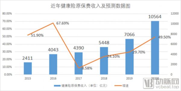 2019年,我国健康险原保费收入为7066亿元,同比增长29.7%。2020年第一季度,虽然受疫情影响,健康保险保费收入2641亿元,同比增长21.6%。在过去5年,整个行业的年复合增长率更是接近30%,按增速预计,今年我国的健康险市场,将达到万亿级别。
