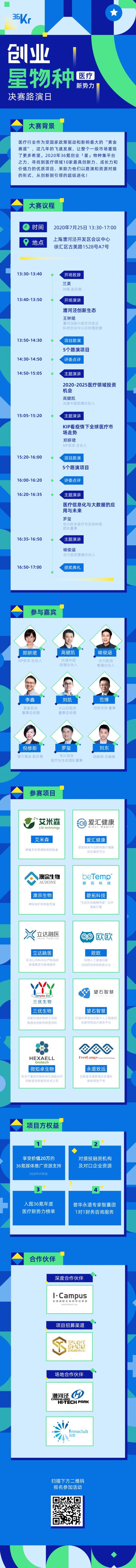 基于此,36氪举办了创业「星」物种大赛——“医疗新势力”,试图让国内医疗健康产业生态里的思想相互碰撞融合,将“新势力”尽情发挥,并通过路演以“硬科技”为驱动的医疗难题解决能力,帮助项目曝光和链接产业资源、帮助机构挖掘有价值的项目,推动产业的创新发展。