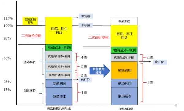 (两票制前后药品价格机制,制图:海若镜)