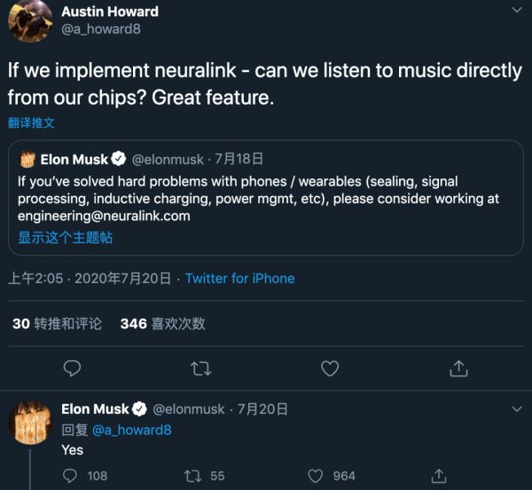 大脑直连音乐流?Neuralink脑机接口黑科技下月面世,马斯克在线招聘