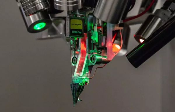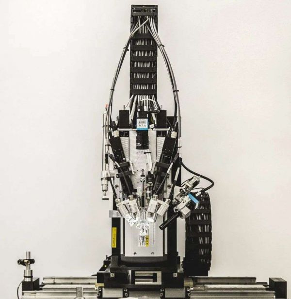 Neuralink 开发出的细线对大脑造成损伤的可能性较小,并且为大量数据的传输提供了可能。但是这种线难以植入,因为它非常灵活。为了解决这个问题,Neuralink 开发了一种「每分钟自动嵌入 6 根线(192 个电极)的神经外科手术机器人」。