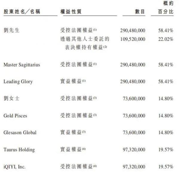 稻草熊IPO前股权结构显示,稻草熊的控股股东为刘小枫,通过Master Sagittarius持股58.41%,不过根据投票安排,刘小枫可行使80.43%的投票权。爱奇艺的子公司Taurus Holding则持有稻草熊19.57%股权,是第二大股东。