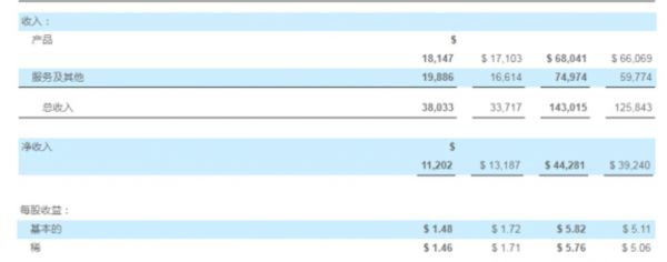 其中,产品营收成本为43.70亿美元,去年同期为32.98亿美元;服务及其他营收成本为79.69亿美元,去年同期为71.14亿美元。
