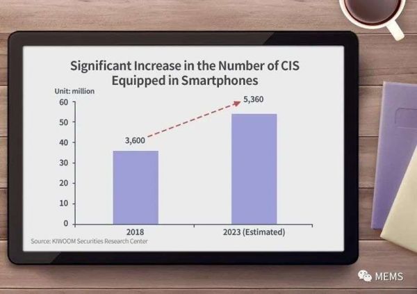 智能手机中CMOS图像传感器数量增长明显(来源:KIWOOM Securities)