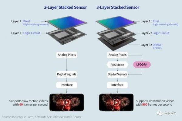 最新的三层(CIS + ISP + DRAM)堆叠式CMOS图像传感器(来源:KIWOOM Securities)