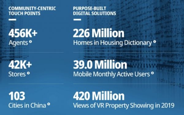 截至2020年6月30日,贝壳集团在中国103个经济活跃的城市拥有260多个房地产经纪品牌,4.2万多家以社区为中心的门店,以及45.6万个代理商。