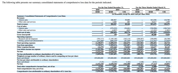 理想汽车第二季度财报,截图自理想汽车招股书