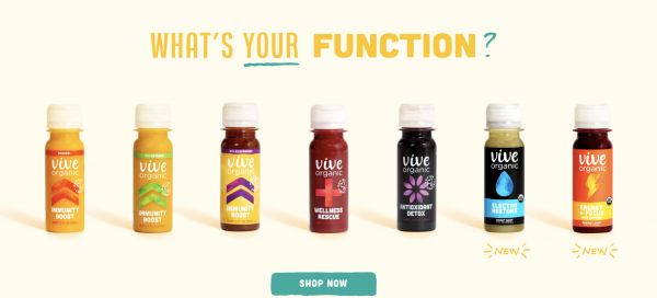 2015 年,总部位于加州威尼斯的「Vive Organic」,由销售副总裁 JR Simich、首席运营官 Kyle Withycombe 和首席执行官 Wyatt Taubman 共同成立。它是一家功能性饮料品牌,为客户提供了保健性的饮品,重点在于增强人们免疫系统的能力。