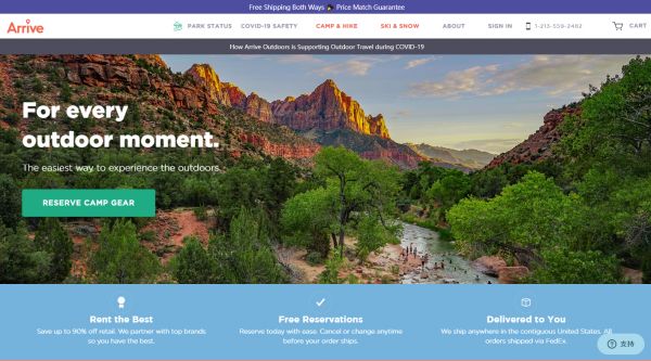 Arrive Outdoors 是一家户外运动装备租赁公司,成立于2017年,成立的初衷是为户外运动爱好者提供旅行装备。