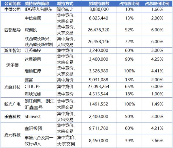 7月23日公告减持的9家上市公司股东,按当日股价,计划套现的金额合计约88亿元。其中减持金额最大的是中微公司,减持金额在25.33亿元以上。减持比例最高的是西部超导,拟减持股份占总部本的14%,减持规模达21亿元。