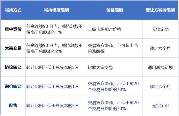 至此,科创板一共提供了五种减持方式,即A股原有的集中竞价、大宗交易、协议转让,以及新增的询价转让和配售。