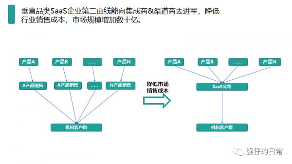 相对于泛品类的SaaS,垂直SaaS的第一曲线(SaaS收费)市场空间较窄,所以采用,融资 - 销售(渠道)补贴 - 低价圈地(SaaS部分很可能是亏损的)的模式很可能拉崩。