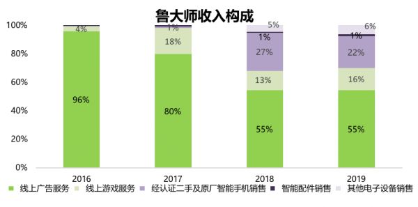 数据来源:鲁大师年报(截至2020年6月28日)注:绿色系为线上流量变现业务;紫色系为电子设备销售业务