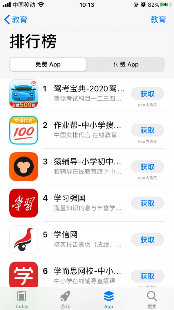 经过一系列的品牌推广,猿辅导的用户累计下载量不断升高。截至写稿到作业帮在教育类 APP 中排名第二,猿辅导紧随其后位列第三。