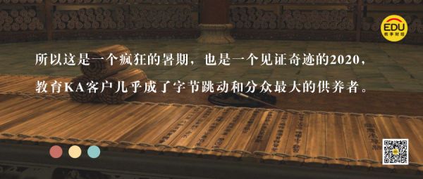 所以这是一个疯狂的暑期,也是一个见证奇迹的2020,几家教育KA客户几乎成了字节跳动和分众最大的供养者。