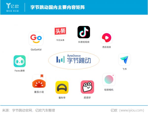 字节跳动“破局”车联网最大的利器无疑是抖音,第二大利器则是应用生态。被称为“APP工厂”的字节跳动,产品涵盖新闻资讯、视频、社区、金融、教育等众多领域,其产生的用户数据体量以及数据演算出的价值可想而知。