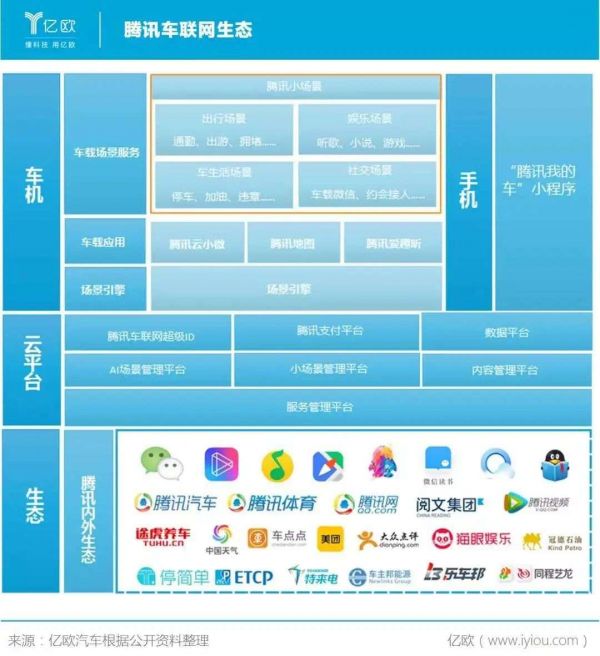 腾讯在车联网领域定位是成为车企出行服务化转型的Tier 1,为车企提供用户服务和营销、车联网和平台运营、地图和云服务、生态服务和安全风控五大核心能力。