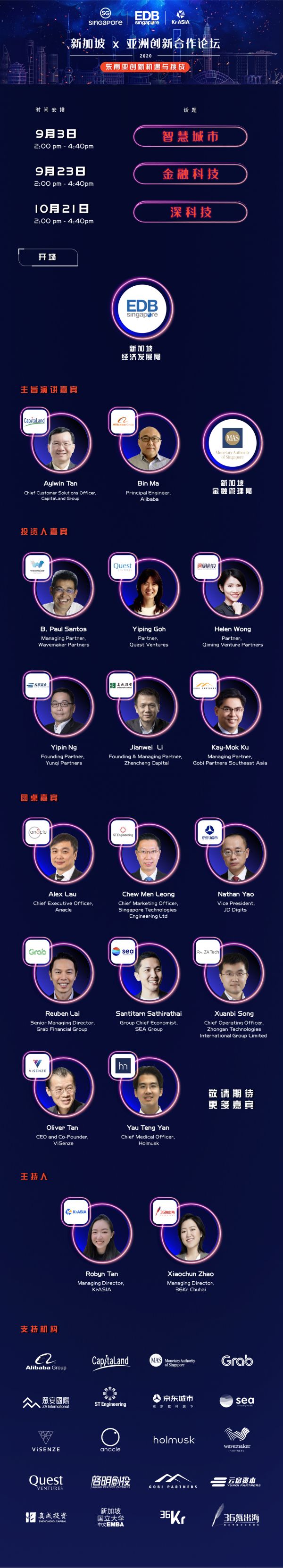 为了进一步促进双方的沟通与合作,打破投资和商业活动中的信息壁垒,新加坡经济发展局(EDB)联手 KrASIA 共同举办——新加坡 x 亚洲创新合作论坛2020,基于各自的资源优势,联动两个地区新经济领域里的顶尖投资机构和公司,分享在东南亚地区的投资和商业经验,共话当前面临的机遇与挑战。
