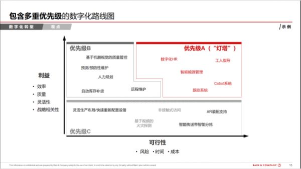 第三,制定包含多重优先级的数字化举措。按照重要性和紧迫程度进行排序,如“灯塔法则”中将各项举措分为优先级A,优先级B,优先级C,率先执行并优化优先级A项目。