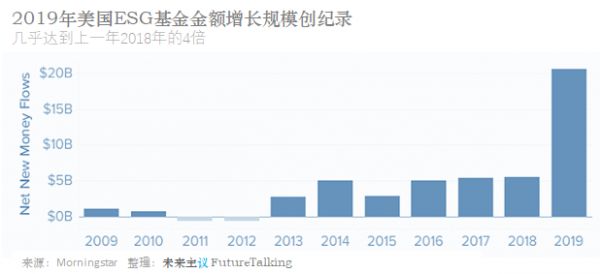 在投资领域,以环境、社会与治理为发展理念的ESG(Environmental, Social, and Governance)方向,近年来在发达国家越来越受追捧。许多投资人认为更关注可持续性的企业长期发展会更好,也会带来更大的投资回报。从Morningstar的数据上看,过去几年里,美国ESG基金基本呈现逐年递增态势,而在2019年出现了破纪录增长,增量是2018年的4倍。并且在进入2020年后,一季度的数据显示出迅猛的增长趋势还在进一步强化。