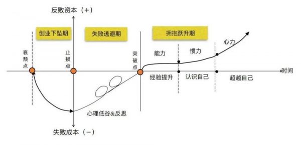 先是创业下坠期,会出现止损决策,这既是止损点,也是反败起点。