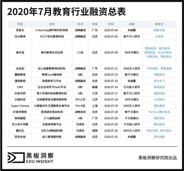 7月教育行业融资报告:15家企业共融资9.75亿元,企业服务赛道初露锋芒