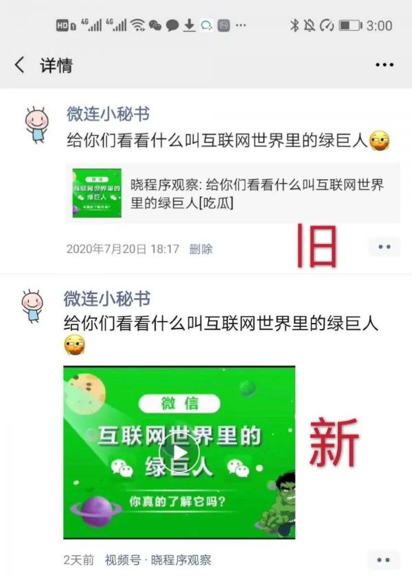 6月份在视频号经历了一次重大改版后,另外两个重要的入口:聊天分享和朋友圈分享的展示形式也有了大的改变。