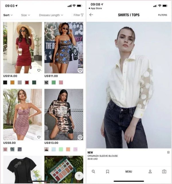 图注:SheIn(左)和 Zara(右)应用截图