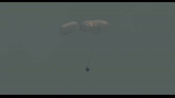 在成功进入大气层后,龙飞船经历了约 1927 摄氏度的高温。在到达一定高度后,龙飞船展开降落伞,帮助自身减缓坠落速度,最终成功降落在海洋表面。