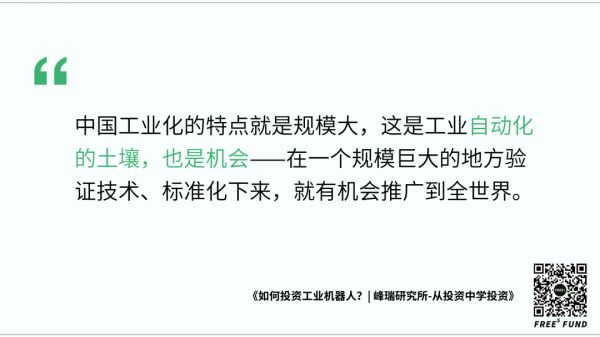 中国工业化的特点就是规模大,这是工业自动化的土壤,也是机会——在一个规模巨大的地方验证技术、标准化下来,就有机会推广到全世界。