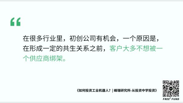 一个延伸的小结论是,在很多行业里,初创公司有机会,一个原因是,在形成一定的共生关系之前,客户大多不想被一个供应商绑架。