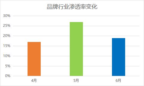 这是一个品牌今年4-6月的行业渗透率,尽管该品牌在618期间加大了投放,但6月渗透率对比5月却下降了。这里的渗透率不是GMV的渗透率,而是购买人数的渗透率。因为在绝大多数的品类里,不同品牌都是对钱包的替代关系,消费者购买了A品牌,基本不会在短期内购买B品牌。