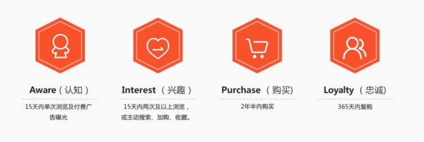 从前品牌与消费者只有两种关系——买或者没买;但阿里数据银行支持还原消费者从认知(Aware)、到兴趣(Interest)、购买(Purchase)、忠诚(Loyalty)的整个旅程透视,即消费者AIPL模型。