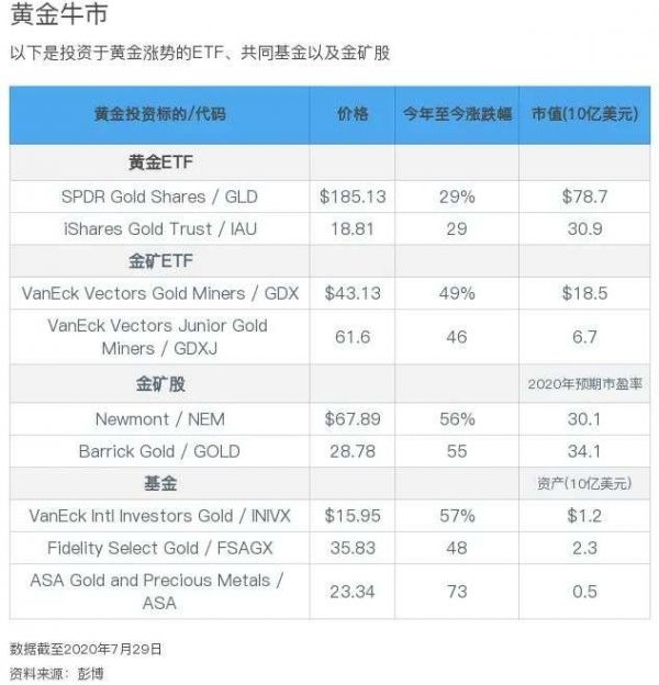 想投资黄金的人该怎么上车?在7月31日的报道中,《巴伦周刊》介绍了三种方式:ETF,金矿股和共同基金。