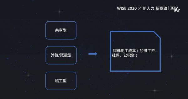 为什么会有区别于长期的固定单一劳动关系的新型法律关系,或者更灵活的法律关系出现呢?我个人理解其降低用工成本的点在于:一加班费,二社保公积金。基本工资很难降,因为有市场化调节的机制,降太低人家不来你这里了。但加班费基数的比例对于很多公司,特别是创业型、人力密集型的企业,实际上占非常大成本,这也包括社保。我们知道社保本身是有一个缴费基数,还有交纳的比例。这次疫情政府出台了很多减免社保的政策,但是它毕竟是一个临时措施,而且就我们自己了解到的一些情况,好像落地效果也不是那么尽如人意。