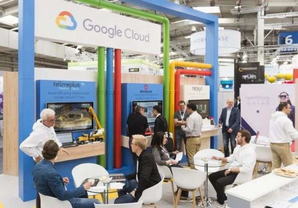 而谷歌在云计算等新兴业务上仍保留着Geek特质。在2018年德国汉诺威工业展上的一幕就很有代表性。亚马逊和微软在展会上都选择和制造业合作伙伴一起,通过实例展示制造业实现工作方式转型、降低成本并提高收入的创新技术和成果。展厅布置成工业风,或者直接摆上工业机器,以示融入。