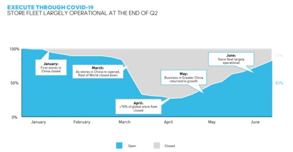 ▲截至6月底,阿迪达斯83%的门店已经开始运营。
