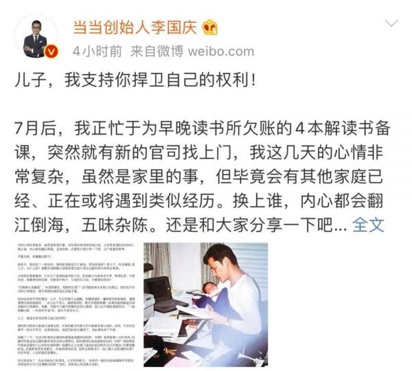 一、李国庆微博喊话儿子:法庭见