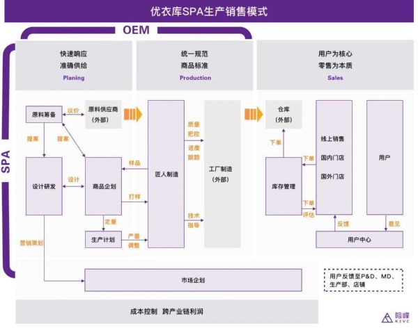 本质上,联营类似于优衣库等快时尚品牌SPA (Speciality Retailer of Private Label Apparel)。从商品策划、原料采购、到质量控制、数据跟踪和库存控制,全部由品牌完成。两者最大不同,是香蜜闺秀针对下沉市场的高度分散性,将销售环节分离出去,以此换取快速扩张。
