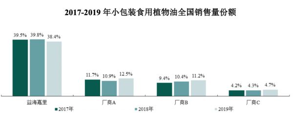 益海嘉里引用了尼尔森数据,以解释其产品在国内地位:小包装食用植物油行业,按销售量统计,其2017年-2019年的销售份额分别为39.5%、39.8%和38.4%;相同年份,包装米现代渠道市场占有率分别为16.4%、17.9%和18.4%;包装面粉现代渠道市场占有率分别为29.1%、26.5%和26.7%。