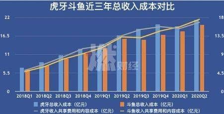 行业竞争的白热化,使得斗鱼和虎牙的成本投入历年攀升。Q2,虎牙营业成本达到21.1亿元,较去年同期增长超过26.7%。同期,斗鱼营业成本也从Q1的17.92亿元上升至19.85亿元,同比增长26.32%。
