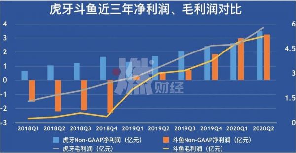 细看,不难发现这是一场你争我夺的追赶。在今年Q1,斗鱼在毛利润与调整后的净利润两方面,均首次反超虎牙,不过好景不长,在Q2再度被虎牙超过。仅一季度位置就调换,足见双方竞争激烈程度。