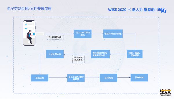 法大大的一家大型世界五百强的制造业企业客户,在用工高峰期时要处理一天几千人的入职,过去他们需要包一个大的操场,人山人海。这个过程需要大量排队、等待,消耗的时间非常多。接入法大大电子合同之后,要入职的员工只需在手机上操作即可完成签署,整个签约过程只需要几分钟,员工不需要在一个地方集中来处理。另外涉及到远程入职,员工在不同地区即可便捷完成入职手续。当然离职的场景也是适用的,离职也可以进行远程的文件签署。