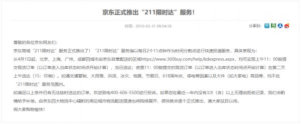 ▧京东推出211限时达服务,截图自JD.com