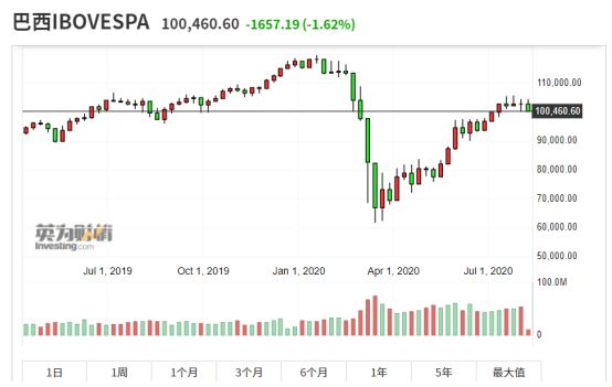 而巴西市场股指在三月份开始下坠之后,虽然近几个月已探底回升,但仍未恢复疫情前水平。