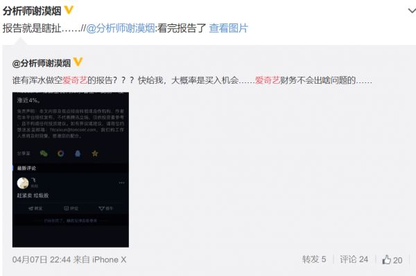 也有投资者称,这次对爱奇艺的做空报告完全是瞎扯。
