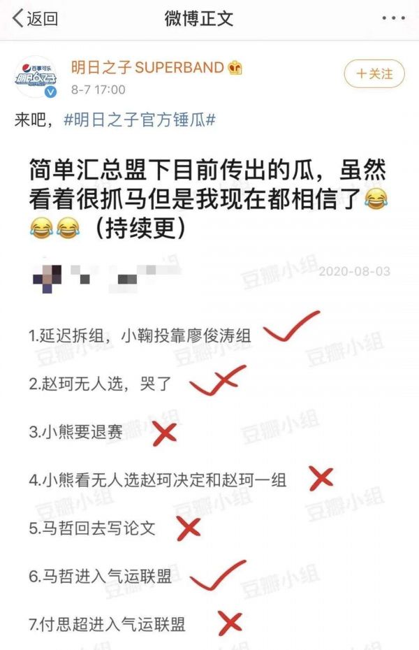 此外,从节目扩大受众的角度来看,因嗑CP而衍生出的不少“黑话”与讨论,也会将此前没看过该综艺的观众直接拒之门外。8月7日,节目组官方锤瓜事件发生后,就有粉丝针对节目组这一行为评论道“真就豆瓣限定爆款综艺?”