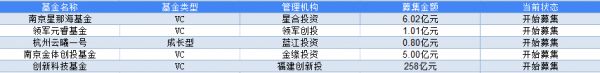 36氪经公开资料整理,本周共有5支基金开始募资,计划募集资金规模超过270亿人民币。其中最大笔募资为创新科技基金,由福建省创新创业投资管理公司与福建省产业股权投资基金、龙岩市产业股权投资基金共同发起设立的,在龙岩市新罗区完成注册,正式启动运作。